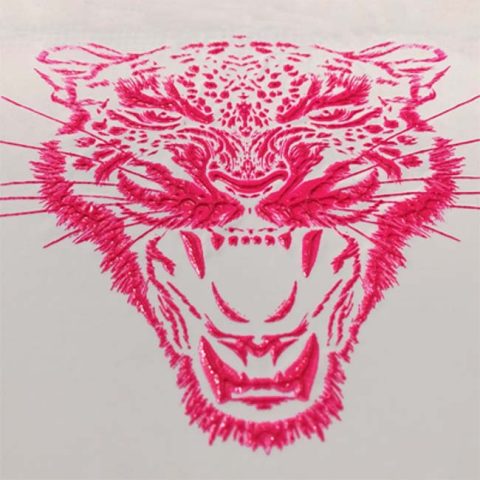 Catalyst XG-360B mixing ratio of 10%. Printing on the back of fabrics to get a high-density sharp effect by embossing machine. Gets a 3d silicone printing on fabric effect.